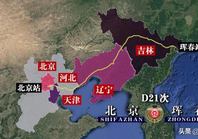 D21次列车运行线路图:北京开往珲春,全程1484公里,D21次列车运行线,路图:北京开往珲春,,全程1484公里...