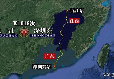 K1019次列车运行线路图:九江开往深圳东,全程1057公里,K1019次列车运,行线路图:九江开往深,圳东,全程1057公,里...