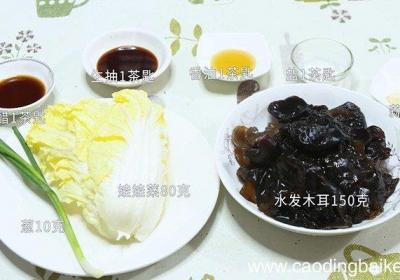 步骤1准备食材:水发木耳150克、娃娃菜80克、葱10克、蒜2瓣、盐1茶匙、生抽1茶匙、醋1茶匙、香油1茶匙 。步骤2娃娃菜切块 。步骤3蒜切末 。步骤4葱切葱花 。步骤5锅内倒水下木耳焯熟,捞出控干水分 。步骤6娃娃菜下水焯熟,捞出控干水...