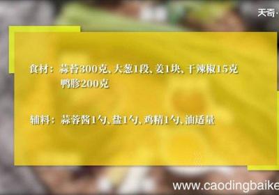 步骤1食材:蒜苔300克、大葱1段、姜1块、干辣椒15克、鸭胗200克 。辅料:蒜蓉酱1勺、盐1勺、鸡精1勺、油适量 。【蒜苔鸭胗怎么做 蒜苔鸭胗】步骤2蒜苔洗净去老梗后切段 。步骤3大葱切片 。步骤4姜切末 。步骤5干辣椒切丝 。步骤6鸭...