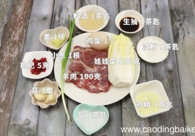 发布时间: 13小时前步骤1准备食材:羊肉100克、娃娃菜200克、姜1块、蒜3瓣、小葱1根、料酒1茶匙、盐1茶匙、生抽1茶匙、淀粉1茶匙、鸡蛋1个、鸡精1茶匙、枸杞5克 。步骤2羊肉洗净剁成末 。步骤3娃娃菜洗净切段 。步骤4姜切末 。步骤5蒜切末 。步骤6小...