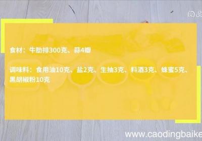 步骤1食材:牛肋排300克,蒜4瓣调味料:食用油10克,盐2克,生抽3克,料酒3克,蜂蜜5克,黑胡椒粉10克步骤2蒜切末 。【煎牛肋排 煎牛肋排做法】步骤3牛肋排洗净,加入料酒、盐、生抽、蒜、黑胡椒粉,拌匀,腌制30分钟 。步骤4取出牛肋排...