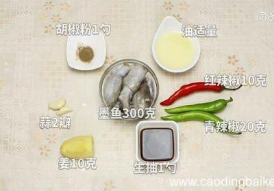 步骤1准备食材:墨鱼300克、姜10克、蒜2瓣、红辣椒10克、青辣椒20克、生抽1勺、胡椒粉1勺、油适量 。步骤2蒜切末 。步骤3姜切末 。步骤4青辣椒切小圈 。步骤5红辣椒切小圈 。步骤6处理干净的墨鱼仔切成小条 。步骤7锅里倒油加热,先...