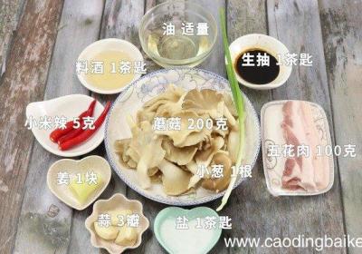 发布时间: 7小时前步骤1准备食材:蘑菇200克、五花肉100克、蒜3瓣、姜1块、盐1茶匙、油适量、料酒1茶匙、生抽1茶匙、小米辣5克、小葱1根 。步骤2蘑菇洗净撕小朵 。步骤3五花肉洗净切片 。步骤4蒜切片 。步骤5姜切片 。步骤6小米辣切圈 。步骤7小葱切...