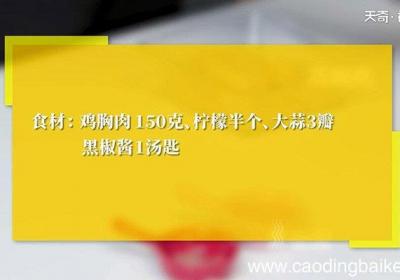 步骤1食材:鸡胸肉150克、柠檬半个、大蒜3瓣、黑椒酱1汤匙 。步骤2大蒜切末 。步骤3【酸酸黑椒鸡胸肉的做法 酸酸黑椒鸡胸肉怎么做】鸡胸肉洗净用刀背拍打,表面划刀,方便入味 。步骤4加入蒜末、黑椒酱,挤入柠檬汁,搅拌均匀 。步骤5将锅预热...