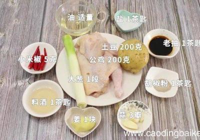 步骤1准备食材:公鸡200克、土豆200克、料酒1茶匙、姜1块、蒜3瓣、胡椒粉1茶匙、小米椒5克、大葱1段、老抽1茶匙、盐1茶匙、油适量 。步骤2公鸡洗净剁成小块 。步骤3土豆去皮切块 。步骤4姜切片 。步骤5蒜切片 。步骤6小米辣切圈 。...