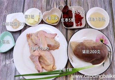 步骤1主料:猪肚200克、鸡肉100克辅料:姜1块、蒜3瓣、白胡椒粉10克、料酒1茶匙、盐1茶匙、红枣5颗、枸杞5克、小葱1根步骤2猪肚洗净切条 。步骤3鸡肉剁块洗净 。步骤4姜切片 。步骤5蒜切片 。步骤6红枣去核切片 。步骤7枸杞温水泡...