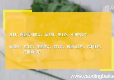 步骤1食材:豌豆尖400克、蒜2瓣、姜1克、小米辣2个 。调味料:盐1克、生抽2克、醋1克、辣椒油3克、鸡精1克、花椒粉1克 。【凉拌豌豆尖怎么做 凉拌豌豆尖的做法】步骤2蒜切末 。步骤3姜切末 。步骤4小米辣切末 。步骤5豌豆尖倒入沸水中...