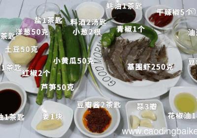 步骤1准备食材:基围虾250克、小黄瓜50克、土豆50克、芦笋50克、青椒2个、红椒1个、洋葱50克、料酒2汤匙、白糖1茶匙、盐1茶匙、生抽1茶匙、芝麻油1茶匙、花椒油1茶匙、蚝油1茶匙、豆瓣酱2茶匙、干辣椒5个、姜1块、蒜3瓣、小葱2根、...