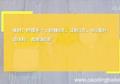 步骤1食材:柠檬半个,砂糖8克,淀粉3克,水5毫升调味料:食用油5克步骤2柠檬压汁 。步骤3柠檬皮去白瓤,黄皮切碎,越碎越好 。步骤4取小碗,加入砂糖、柠檬汁、水、淀粉,拌匀 。步骤5热锅倒油,油温4成热时,倒入调好的料汁、柠檬皮屑,不停搅...