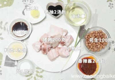 发布时间: 10小时前步骤1准备食材:猪蹄200克、花生100克、香辣酱2汤匙、料酒1汤匙、老抽2汤匙、生抽1茶匙、盐1茶匙、小葱1根、姜1块、油适量 。步骤2姜切片 。步骤3葱切葱花 。步骤4花生提前浸泡半小时(猪蹄提前让老板剁成块) 。步骤5猪蹄洗净放入姜片...