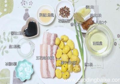 步骤1准备食材:五花肉200克、栗子100克、姜1块、葱1根、盐1茶匙、酱油1汤匙、料酒1汤匙、八角2个、香叶2片、花椒5克、桂皮1块、冰糖6颗、油适量 。步骤2姜切片 。步骤3葱切葱花 。步骤4五花肉切块 。步骤5板栗改小块 。步骤6将五...