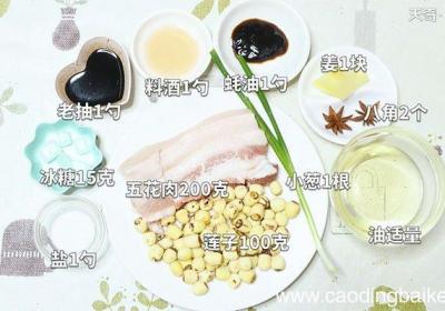 步骤1准备食材:五花肉200克、莲子100克、小葱1根、姜1块、冰糖15克、蚝油1勺、老抽1勺、料酒1勺、盐1勺、八角2个、油适量 。步骤2【莲子红烧肉的做法 莲子红烧肉怎么做】姜切片 。步骤3葱切葱花 。步骤4五花肉切块(莲子提前用水泡发...