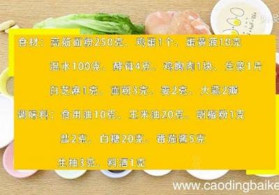 步骤1食材:高筋面粉250克、鸡蛋1个、蛋黄液10克、温水100克、酵母4克、鸡胸肉1块、生菜1片、白芝麻1克、面粉3克、姜2克、大蒜2瓣 。调味料:食用油10克、玉米油20克、胡椒粉1克、盐2克、白糖20克、番茄酱5克、生抽3克、料酒1克...