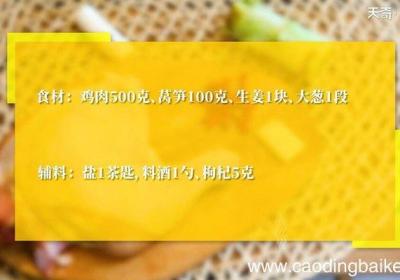 发布时间: 12小时前步骤1所需食材:鸡肉500克,莴笋100克,生姜1块,大葱1段 。所需调料:盐1茶匙,料酒1勺、枸杞5克 。步骤2莴苣去皮切块 。步骤3葱切段 。步骤4姜切片 。步骤5鸡剁成小块 。步骤6锅中适量清水烧开,放入鸡块,加料酒焯去血沫,捞出 。...