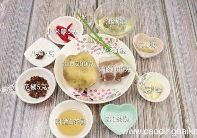 步骤1准备食材:咸肉100克、土豆200克、蒜3瓣、姜1块、小米辣5克、小葱1根、油适量、八角5克、花椒5克、料酒1茶匙、盐1茶匙 。步骤2咸肉洗净切片 。步骤3土豆去皮洗净切片 。步骤4【咸肉蒸土豆片的做法 咸肉蒸土豆片怎么做好吃】蒜切末...
