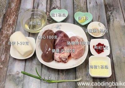 步骤1准备食材:猪瘦肉100克、猪腰子100克、猪心100克、油适量、盐1茶匙、姜1块、胡椒粉1茶匙、白萝卜50克、小葱1根、鸡精1茶匙、枸杞5克【猪杂汤的做法 猪杂汤怎么做好吃】步骤2猪瘦肉洗净切片 。步骤3猪腰子剔去白条,打上花刀切块...