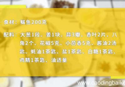 发布时间: 7小时前步骤1准备食材:鲅鱼200克、大葱1段、姜1块、蒜3瓣、香叶2片、八角2个、花椒5克、小茴香5克、酱油2汤匙、蚝油1茶匙、盐1茶匙、白糖1茶匙、鸡精1茶匙、油适量 。步骤2葱切段 。步骤3蒜切两半 。步骤4姜切片 。步骤5鲅鱼切成块 。【红...