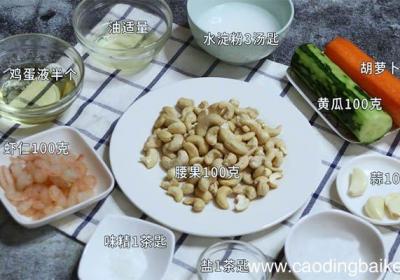 发布时间: 9小时前步骤1准备食材:腰果100克、虾仁100克、黄瓜100克、胡萝卜100克、蒜10克、盐1茶匙、味精1茶匙、水淀粉3汤匙、油适量、鸡蛋液半个 。步骤2黄瓜切丁 。步骤3胡萝卜切丁 。步骤4蒜切末 。步骤5虾仁放入碗中加入盐 。步骤6虾仁放入碗...