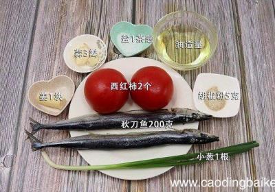 步骤1所需食材:秋刀鱼250克,西红柿1个,生姜1块,大蒜3瓣,小葱1根 。所需调料:料酒1汤匙,盐半茶匙 。步骤2秋刀鱼切小块 。步骤3番茄切小块 。步骤4姜切末 。步骤5蒜切末 。步骤6小葱切葱花 。步骤7炒锅热油,倒入姜蒜末炒香,加番...