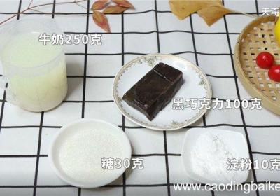 步骤1准备材料:黑巧克力100克、牛奶250克、淀粉10克、糖30克 。步骤2将巧克力切小块(容易融化) 。步骤3碗中放入巧克力、一半牛奶、淀粉、糖混合均匀 。步骤4小火加热,煮到比较浓稠的状态,再倒入剩下的牛奶搅拌均匀 。步骤5最后将巧克...