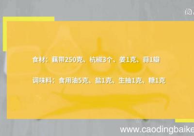步骤1准备食材:藕带250克、干辣椒4个、食用油5克、盐1克、白醋4克、生抽1克 。步骤2藕带洗净、切小段 。步骤3干辣椒剪断 。步骤4热锅倒油、5成热、下干辣椒、炒至浅褐色、加藕带、炒1分钟、调盐、白醋、生抽、炒匀即可 。【酸辣炒藕带做法...