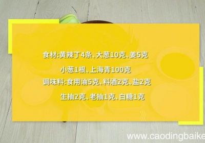 步骤1食材:黄辣丁4条、大葱10克、姜5克、小葱1根、上海青100克 。调味料:食用油5克、料酒2克、盐2克、生抽2克、老抽1克、白糖1克 。步骤2上海青对半切开,放入沸水锅中焯烫30秒,捞出备用 。步骤3黄辣丁加入料酒、1克盐,拌匀腌制1...