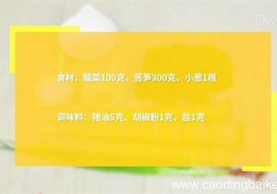 步骤1食材:酸菜100克、苦笋300克、小葱1根、猪油5克、胡椒粉1克、盐1克 。步骤2酸菜切小段 。步骤3苦笋切片 。【苦笋汤的做法 苦笋汤的怎么做】步骤4小葱切葱花 。步骤5炒锅中放入猪油炒化,放入酸菜炒香,加入适量清水煮沸 。步骤6放...