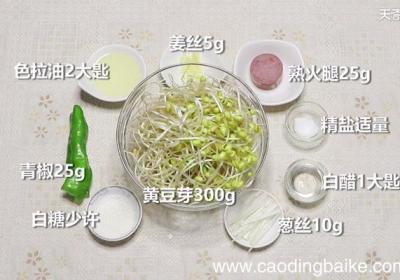 发布时间: 15小时前步骤1准备食材:黄豆芽300g、熟火腿25g、青椒25g、葱丝10g、姜丝5g、精盐适量、白糖少许、白醋1大匙、色拉油2大匙 。步骤2青椒切丝,装入小碗中 。步骤3火腿切丝 。步骤4锅中倒入色拉油,烧至五成热后,放入姜丝、青椒丝、火腿丝、葱...