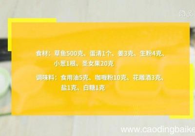 发布时间: 7小时前步骤1食材:草鱼500克、蛋清1个、姜3克、生粉4克、小葱1根、圣女果20克、食用油5克、咖喱粉10克、花雕酒3克、盐1克、白糖1克 。步骤2姜切末 。步骤3小葱切葱丝 。步骤4圣女果对半切开 。步骤5草鱼去骨,剁成鱼蓉,加入蛋清、姜末、2...