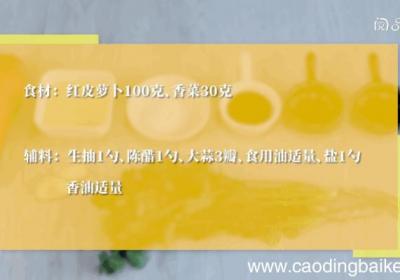 步骤1准备食材:红皮萝卜100克、香菜30克、生抽1勺、陈醋1勺、大蒜3瓣、食用油适量、盐1勺、香油适量 。步骤2萝卜洗净,切薄片,再切成细丝,装入碗中 。步骤3加入少许食盐,用手稍微抓一下 。步骤4香菜洗净,切末 。步骤5大蒜拍碎、切末...