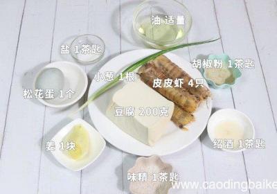 步骤1准备食材:豆腐200克、皮皮虾4只、松花蛋1个、小葱1根、姜1块、盐1茶匙、味精1茶匙、绍酒1汤匙、胡椒粉1茶匙、油适量步骤2姜切末 。步骤3葱切葱花 。步骤4豆腐切小块 。步骤5将皮皮虾用沸水煮熟捞出,脱壳取肉,再将虾肉切成小丁 。...