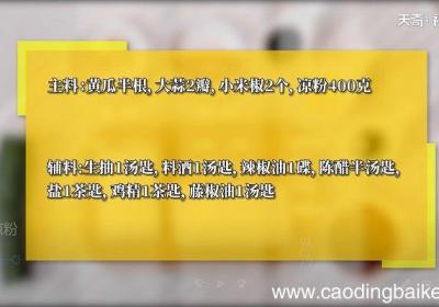 步骤1食材:黄瓜半根,大蒜2瓣,小米椒2个,凉粉400克、生抽1汤匙,料酒1汤匙,辣椒油1碟,陈醋半汤匙,盐1茶匙,鸡精1茶匙,藤椒油1汤匙 。【凉拌凉粉怎么做 凉拌凉粉的做法】步骤2黄瓜切丝,放入碗中 。步骤3凉粉洗净切块,放入碗中 。步...