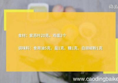 【紫苏煎蛋的做法 紫苏煎蛋怎么做】步骤1食材:紫苏叶20克、鸡蛋2个 。调味料:食用油5克、盐1克、糖1克、白胡椒粉1克 。步骤2紫苏叶洗净、切细末 。步骤3鸡蛋打散、加入盐、糖、白胡椒粉、搅匀、放入紫苏末、搅拌均匀 。步骤4热锅倒油、油温...