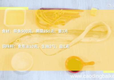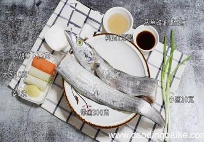 发布时间: 8小时前步骤1准备食材:带鱼300克、姜1块、小葱10克、料酒1汤匙、蒸鱼豉油1汤匙、大葱10克、胡萝卜15克 。步骤2带鱼洗净 。步骤3带鱼切段 。步骤4姜切片 。步骤5小葱切段 。步骤6胡萝卜切丝 。步骤7大葱切丝 。步骤8将带鱼放到盘子里 。...