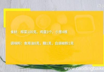 发布时间: 13小时前步骤1食材:榨菜100克、鸡蛋3个、小葱4根 。调味料:食用油8克,糖1克,白胡椒粉1克 。步骤2小葱切葱花 。步骤3鸡蛋打散 。步骤4热锅倒油,油温7成热,倒入蛋液,炒散,盛出 。步骤5【榨菜炒鸡蛋的做法 榨菜炒鸡蛋怎么做】锅中留底油,下...
