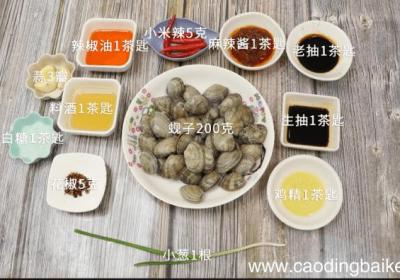 步骤1准备食材:料酒1茶匙、辣椒油1茶匙、小米辣5克、麻辣酱1茶匙、老抽1茶匙、生抽1茶匙、小葱1根、鸡精1茶匙、蒜3瓣、白糖1茶匙、油适量、蚬子200克 。步骤2蚬子用盐水浸泡30分钟洗净 。步骤3小葱切葱花 。步骤4姜切片 。步骤5蒜切...