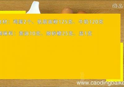 步骤1食材:鸡蛋2个、低筋面粉125克、牛奶120克调味料:黄油10克、细砂糖25克、盐1克步骤2将鸡蛋蛋白、蛋黄分离步骤3蛋黄中加入牛奶、黄油、5克细砂糖、盐,搅拌均匀【华夫饼的做法 华夫饼怎么做】 步骤4筛入面粉,之字形搅拌至无颗粒状步...
