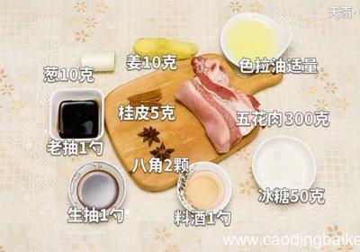 步骤1准备食材:带皮五花肉300克、冰糖50克、料酒1汤匙、生抽1汤匙、老抽1汤匙、桂皮 5克、八角2颗、葱10克、姜10克、色拉油适量 。步骤2五花肉切成1厘米左右的肉片 。步骤3姜切片 。【把子肉的做法 把子肉怎么做】步骤4葱切段 。步...