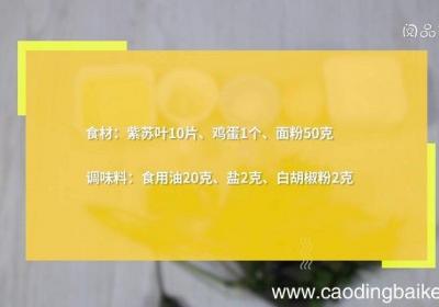 步骤1食材:紫苏叶10片、鸡蛋1个、面粉50克 。调味料:食用油20克、盐2克、白胡椒粉2克 。步骤2紫苏叶洗净、沥干备用 。步骤3碗中放入面粉、盐、白胡椒粉、打入鸡蛋、慢慢注入清水、拌匀、调制成糊状、直至面糊拉起可以顺滑滴下 。【炸紫苏叶...