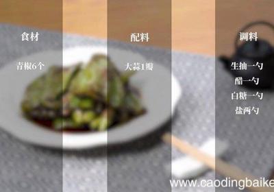步骤1准备食材:青椒6个、大蒜1瓣、生抽1勺、醋1勺、白糖1勺、盐2勺 。步骤2青椒洗净去籽,切成2段 。步骤3大蒜切末备用 。步骤4在碗中加入生抽1勺、醋1勺、白糖1勺,来调酱汁 。步骤5锅中加入适量油,放入青椒改小火煎制,煎至两面微焦后...