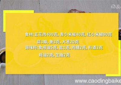步骤1食材:五花肉400克,青小米椒40克,红小米椒80克,蒜3瓣,姜3克,大葱20克、食用油5克,盐1克,鸡精2克,料酒3克,蚝油2克,生抽2克 。步骤2五花肉切薄片 。步骤3青小米椒切片 。步骤4红小米椒切片 。步骤5蒜切片 。【辣椒五...