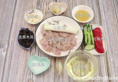 发布时间: 10小时前【爆炒鱼肚的做法 爆炒鱼肚怎么做好吃】步骤1主要材料:鱼肚200克、水发黑木耳20克、黄瓜40克,蒜3瓣、红椒15克、姜1块、大葱1段、料酒1汤匙、盐1茶匙、油适量 。步骤2鱼肚洗净备用 。步骤3姜切片 。步骤4蒜切片 。步骤5大葱切片 。...