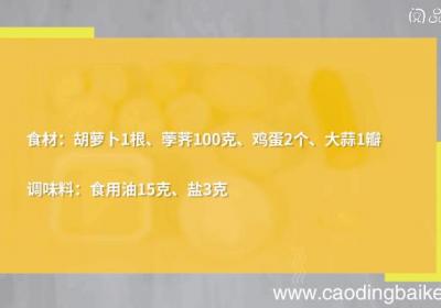 步骤1准备食材:胡萝卜1根、荸荠100克、鸡蛋2个、大蒜1瓣、食用油15克、盐3克。步骤2胡萝卜洗净、去皮、切薄片 。步骤3马蹄洗净、切片 。步骤4大蒜切片 。【荸荠炒胡萝卜的做法,荸荠炒胡萝卜怎么做】步骤5鸡蛋打散备用 。步骤6热锅倒油、...