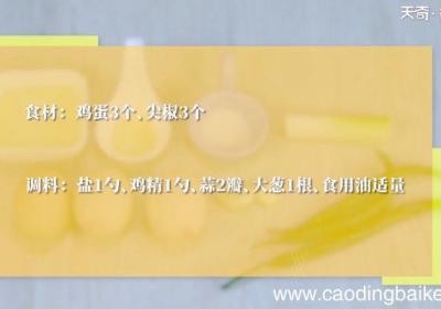 发布时间: 11小时前步骤1准备食材:鸡蛋3个、尖椒3个、盐1勺、鸡精1勺、蒜2瓣、大葱1根、食用油适量 。步骤2大葱切末,蒜拍碎、切末 。步骤3尖椒洗净,切成小块备用 。步骤4鸡蛋磕入碗中,打散 。步骤5锅烧热,放入食用油,倒入鸡蛋液,用中小火煎熟,滑散,捞出...