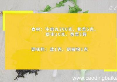 步骤1食材:牛肉丸200克、紫菜5克、虾米10克、香菜1颗 。调味料:盐1克、胡椒粉1克 。步骤2锅中放水煮沸,放入牛肉丸、虾米,煮至牛肉丸浮起再继续煮3分钟 。步骤3香菜切小段 。【潵尿牛丸 潵尿牛丸怎么做】步骤4放入紫菜,加入盐、胡椒粉...