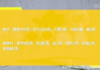 步骤1食材:菱角400克、虾仁150克、小葱2根、大蒜2瓣、姜2克 。调味料:食用油5克、料酒2克、盐1克、淀粉1克、生抽2克、食用碱1克 。步骤2用刀将菱角切成两半,取出菱角肉,再切片 。步骤3虾仁加料酒、淀粉、食用碱,抓匀,腌制10分钟...