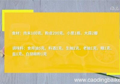发布时间: 12小时前步骤1食材:肉末100克、粉皮200克、小葱1根、大蒜2瓣调味料:食用油5克、料酒1克、生抽2克、老抽1克、糖1克、盐1克、白胡椒粉1克步骤2粉皮切小块 。步骤3小葱切葱花 。步骤4大蒜切末 。步骤5热锅倒油,油温5成热时,倒入肉末,炒散...