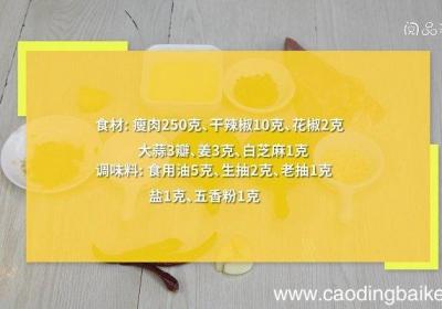 步骤1食材:瘦肉250克、干辣椒10克、花椒2克、大蒜3瓣、姜3克、白芝麻1克 。调味料:食用油5克、生抽2克、老抽1克、盐1克、五香粉1克 。步骤2瘦肉切小丁 。步骤3干辣椒切段 。步骤4大蒜切末 。步骤5姜切末 。步骤6炒锅中油温5成热...