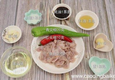 步骤1主要材料:鱼肚200克、红尖椒10克、青尖椒20克、蚝油1茶匙、料酒1茶匙、白糖1茶匙、蒜3瓣、姜1块、油适量、盐1茶匙 。步骤2鱼肚洗净备用 。【尖椒爆鲜鱼肚的做法 尖椒爆鲜鱼肚怎么做好吃】步骤3蒜切片 。步骤4姜切片 。步骤5红尖...